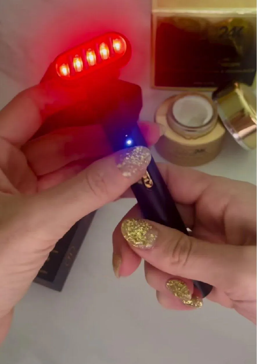 The clinical-grade 6-in-1 wand that combines Dual LED Light Therapy, Thermal Heat, Vibration, and Microcurrent — delivering what estheticians charge $200–300 per session for, from your couch, in 5 minutes. It's the secret to waking up with that "I slept 8 hours" glow — even when winter is doing everything to steal it.